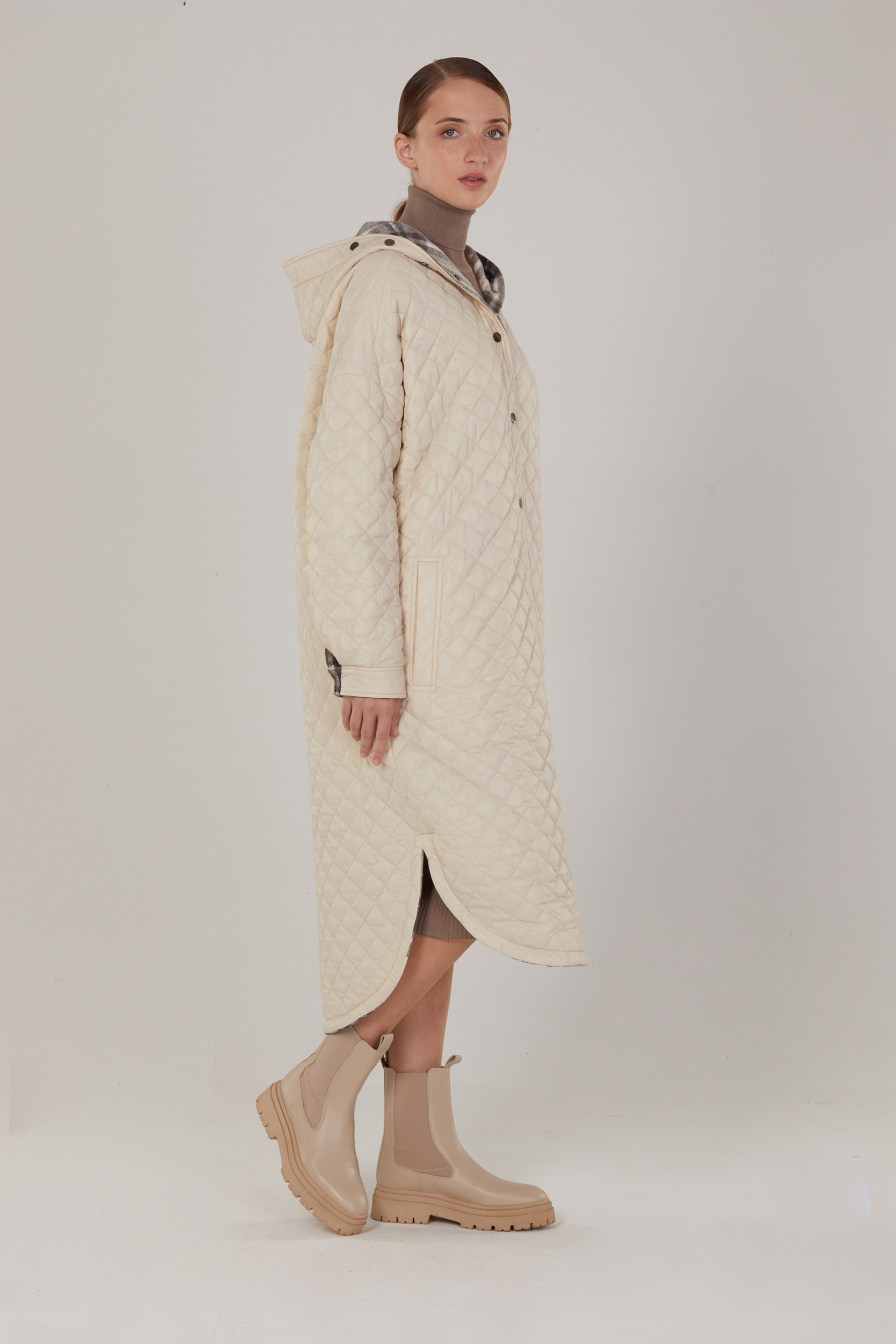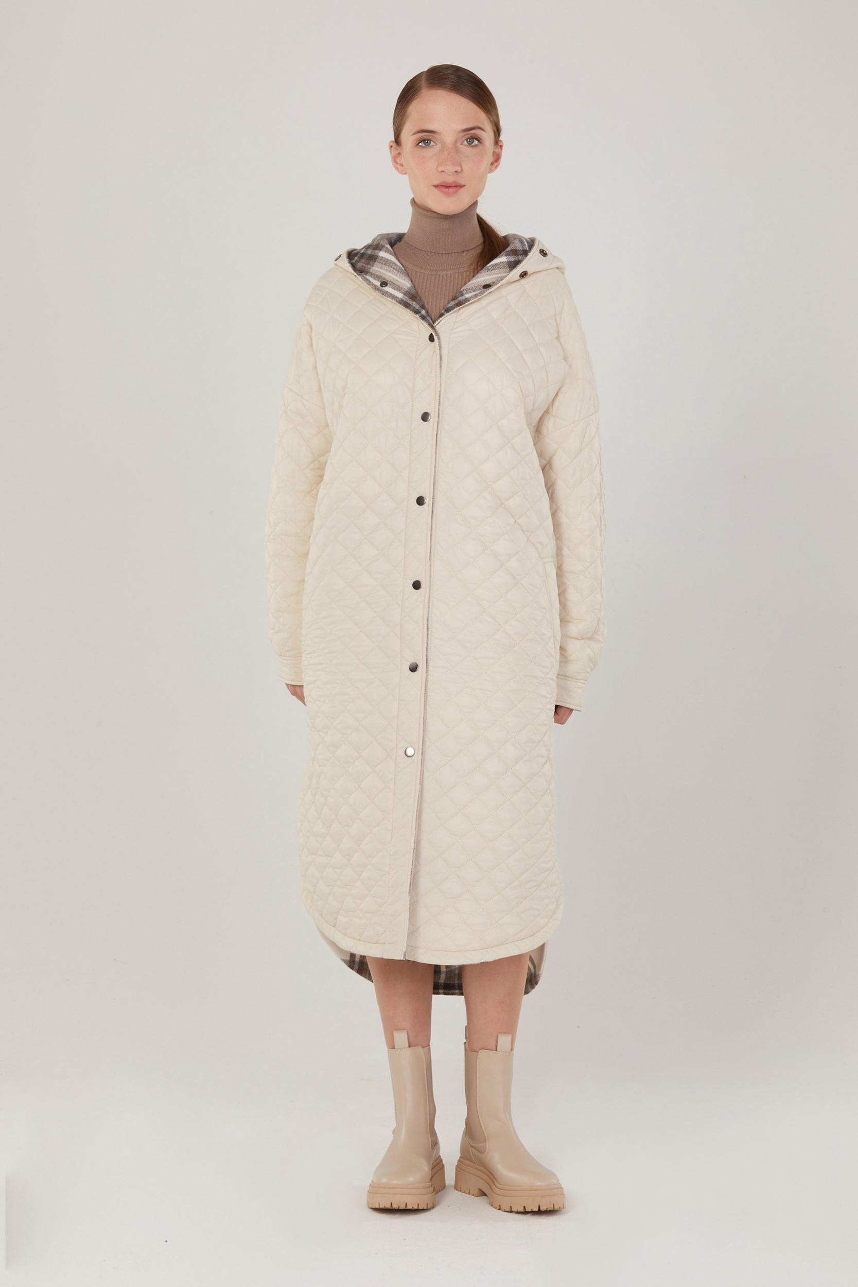 Брендовая дизайнерская куртка-рубашка двухсторонняя для современных активных девушек и женщин. Трендовая модель 2022-2023. Свободный силуэт украшает и дарит уверенность. Практичность и возможность носить изделие на 2 стороны даёт свободу выбора и облегчает составление образов на каждый день. Одна сторона стеганная курточная, вторая облегченный драп типа шерстяной фланели. Акцентом в изделии также является планка, переходящая на капюшон. Куртка-рубашка станет прекрасным дополнением к вашему гардеробу. Создавайте свой образ на каждый день вместе с Solstand..