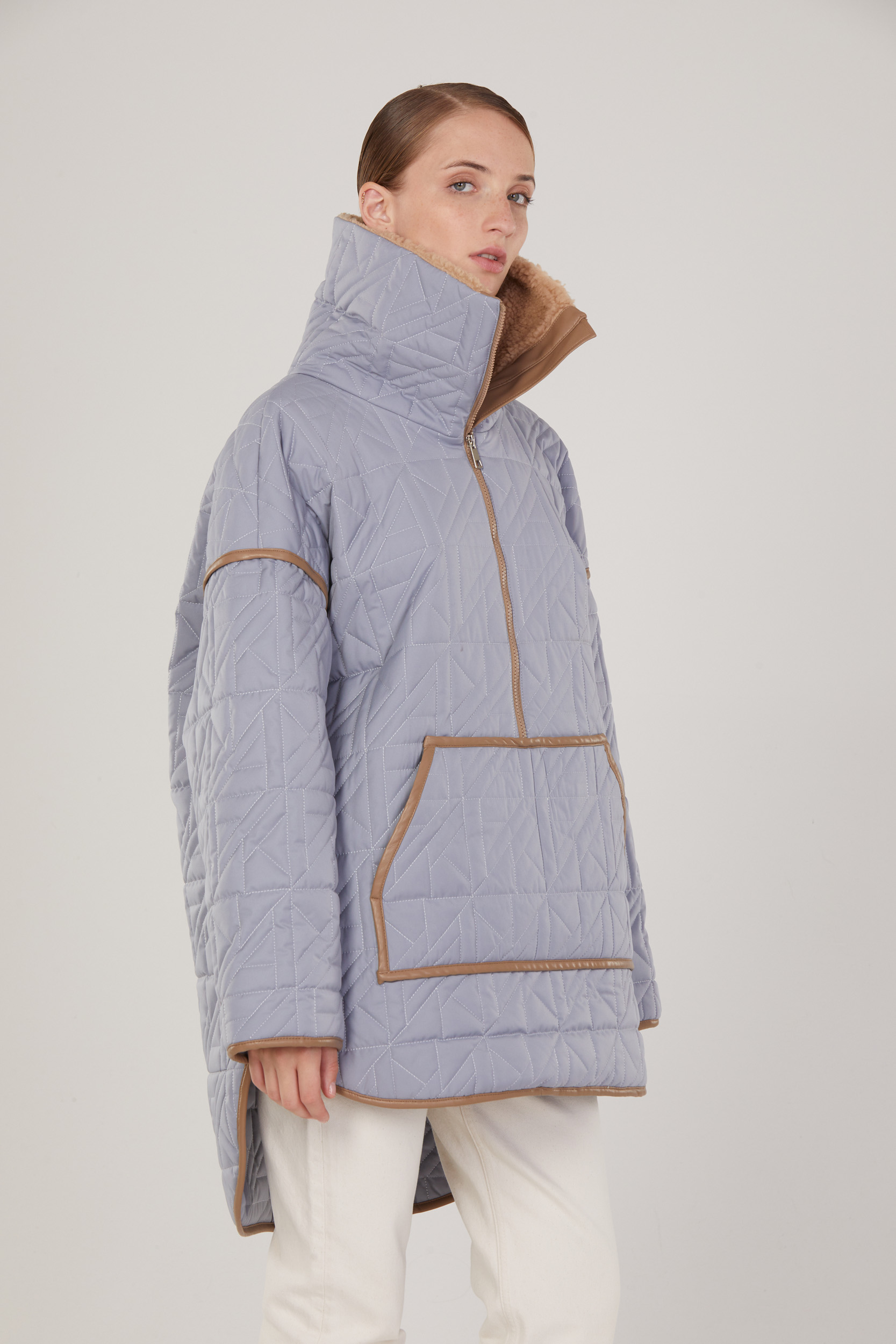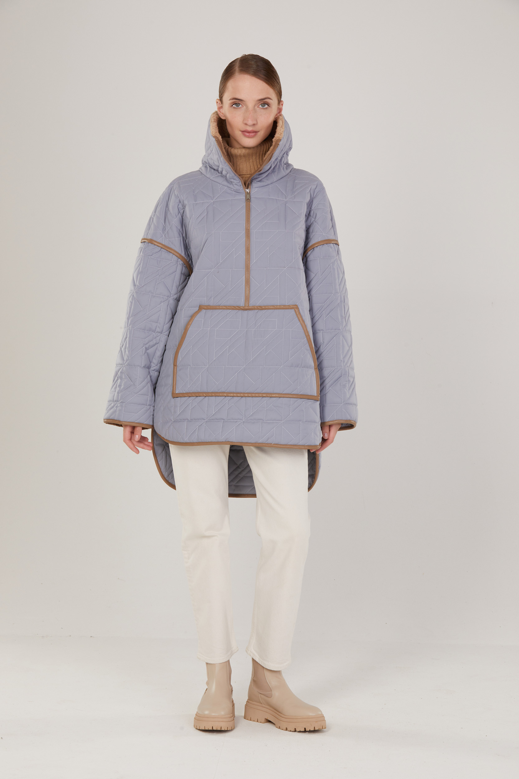 Анорак из оригинальной корейской стеганной курточной ткани. Изделие в стиле оверсайз, с модным объемом — альтернатива легким курткам в осенне-зимний период и отличный компаньон для пуховых жилетов. Отделка искусственной кожей плюс меховой воротник цвета taup очень гармонично сочетаются с цветом стеганной ткани. Удобные карманы для перчаток, воротник-стойка для защиты от ветра, так же воротник можно разложить как отложной. Свободные рукава реглан, благодаря которым можно носить куртку не только на лонгслив, но и на джемпер. Анорак станет прекрасным дополнением к вашему гардеробу. Создавайте свой образ на каждый день вместе с Solstand.