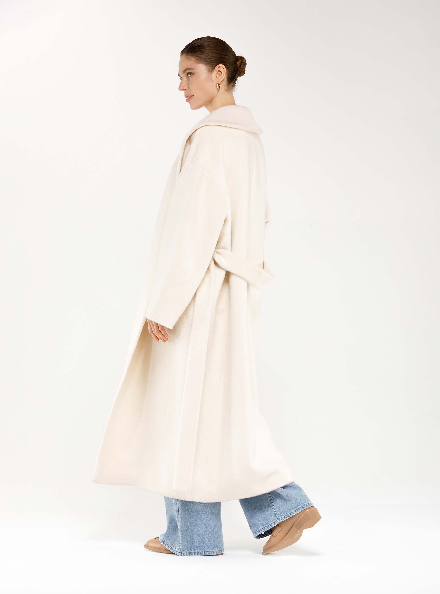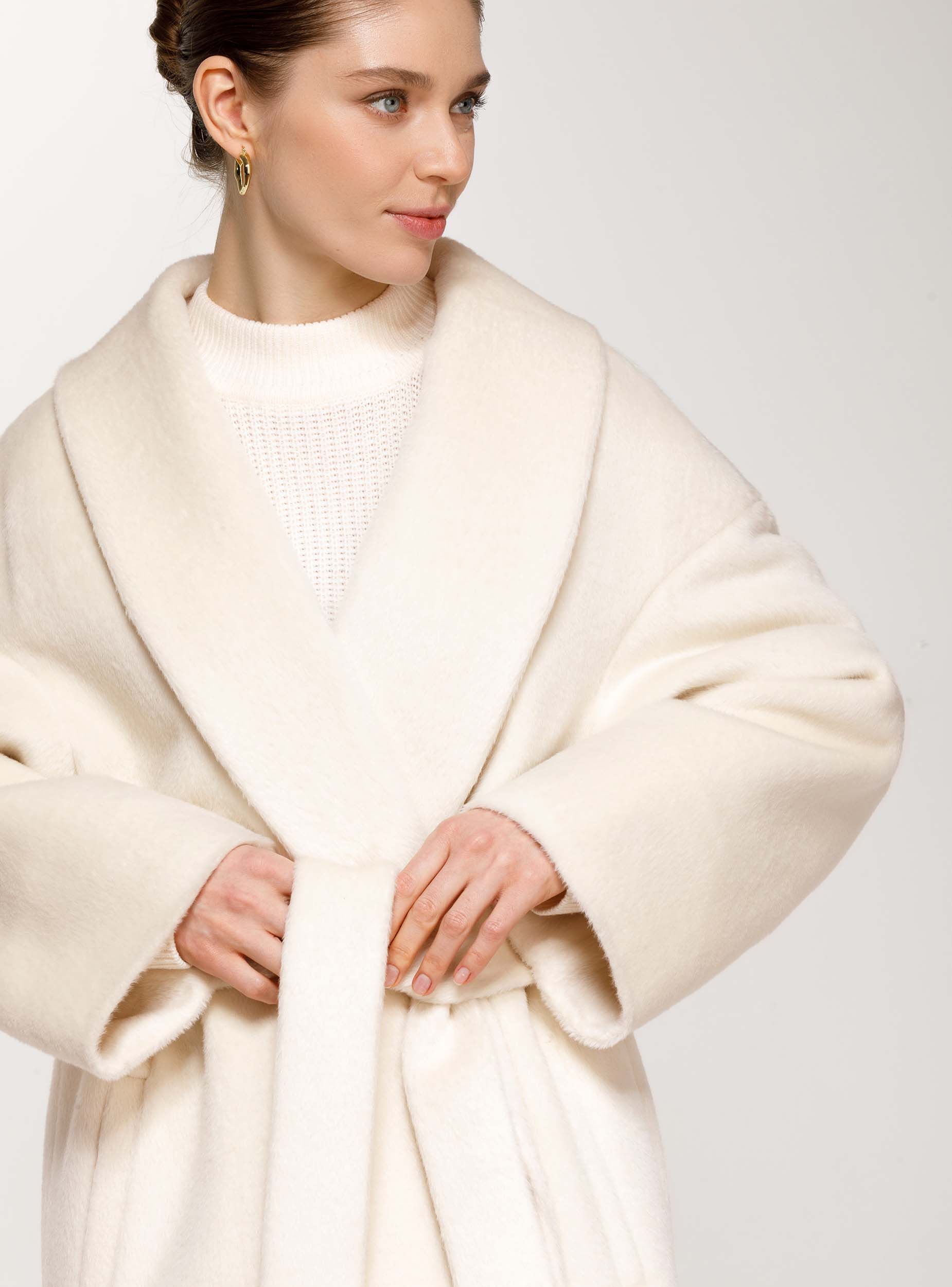 Новая версия нашего бестселлера: в этом сезоне пальто-халат стало еще более уютным, свободным и длинным. Модель сшита из легкой и мягкой шерсти. Изюминка этой модели в ее простате, пластике ткани, в эстетике минимализма. Изделие прямого силуэта, рукав цельновыкроенный с ластовицей, воротник шалевый, нет четкой фиксации по краю борта, за счет этого вы можете увеличивать или уменьшать ширину и объёмы изделия, фиксируя его поясом. Пальто станет прекрасным дополнением к вашему гардеробу. Создавайте свой образ на каждый день вместе с Costoso.