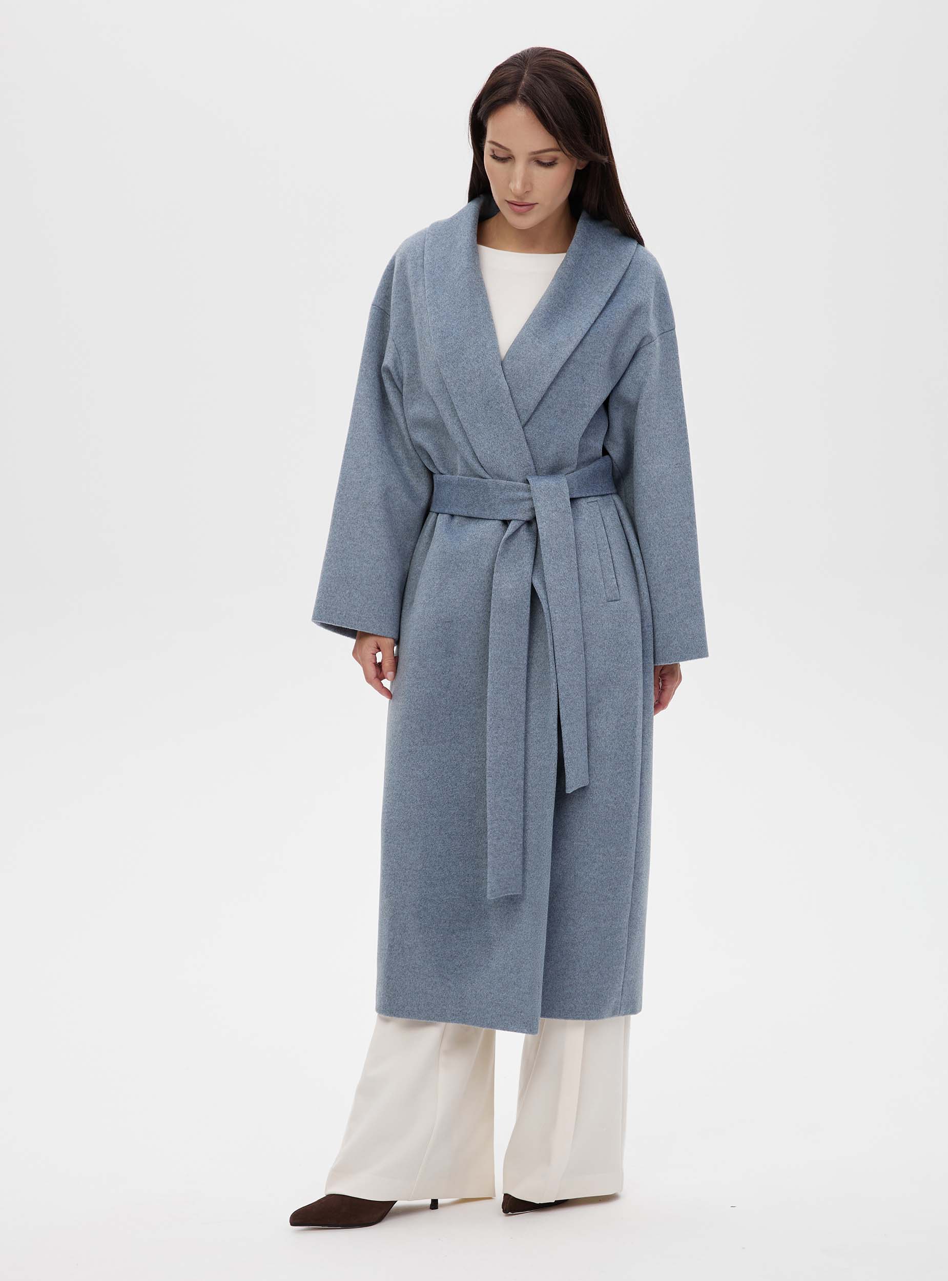 Новая версия нашего бестселлера: в этом сезоне пальто-халат стало еще более уютным, свободным и длинным. Модель сшита из легкой и мягкой шерсти. Изюминка этой модели в ее простате, пластике ткани, в эстетике минимализма. Изделие прямого силуэта, рукав цельновыкроенный с ластовицей, воротник шалевый, нет четкой фиксации по краю борта, за счет этого вы можете увеличивать или уменьшать ширину и объёмы изделия, фиксируя его поясом. Пальто станет прекрасным дополнением к вашему гардеробу. Создавайте свой образ на каждый день вместе с Costoso.