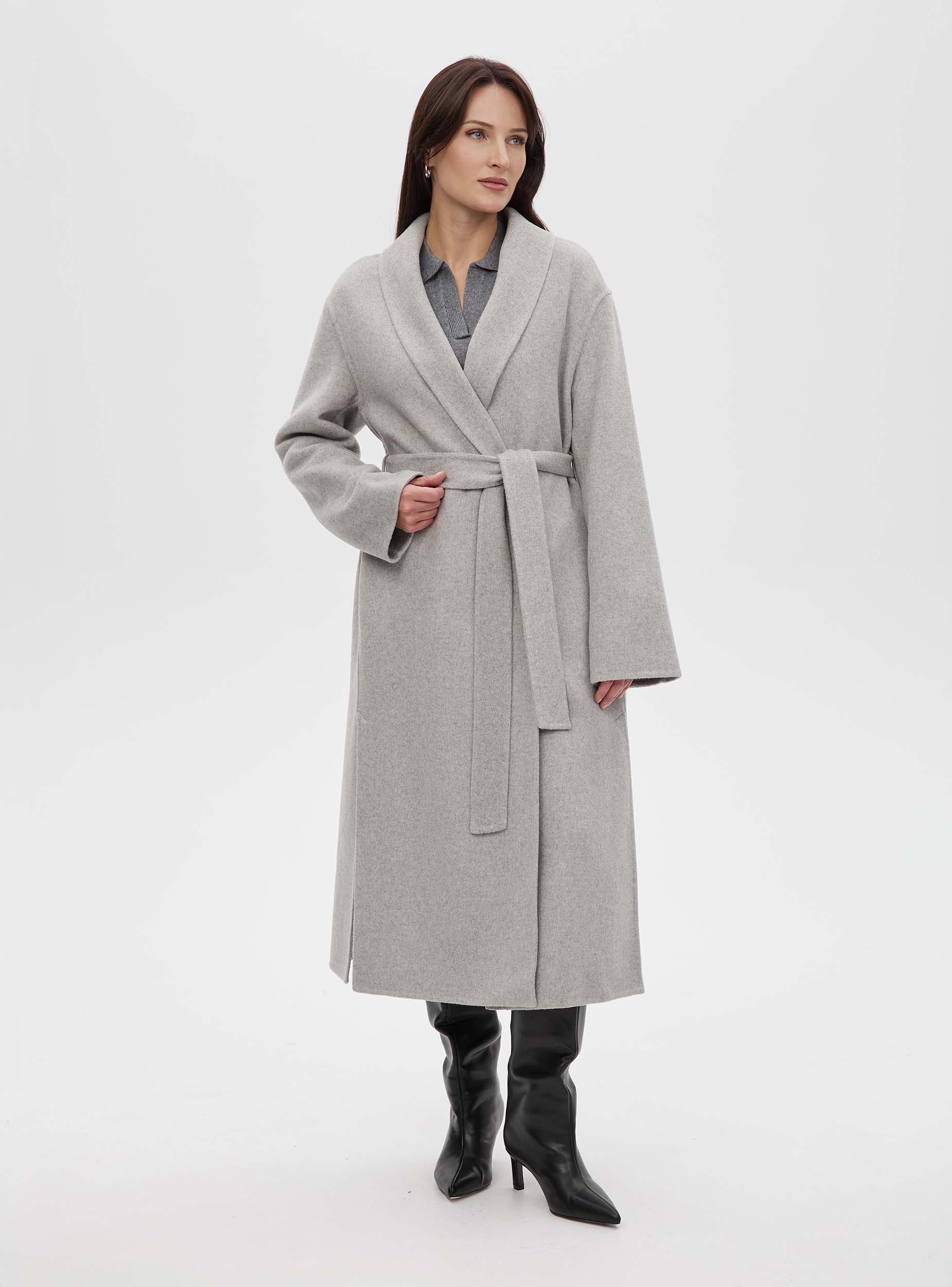 Пальто с воротником шалька double coat